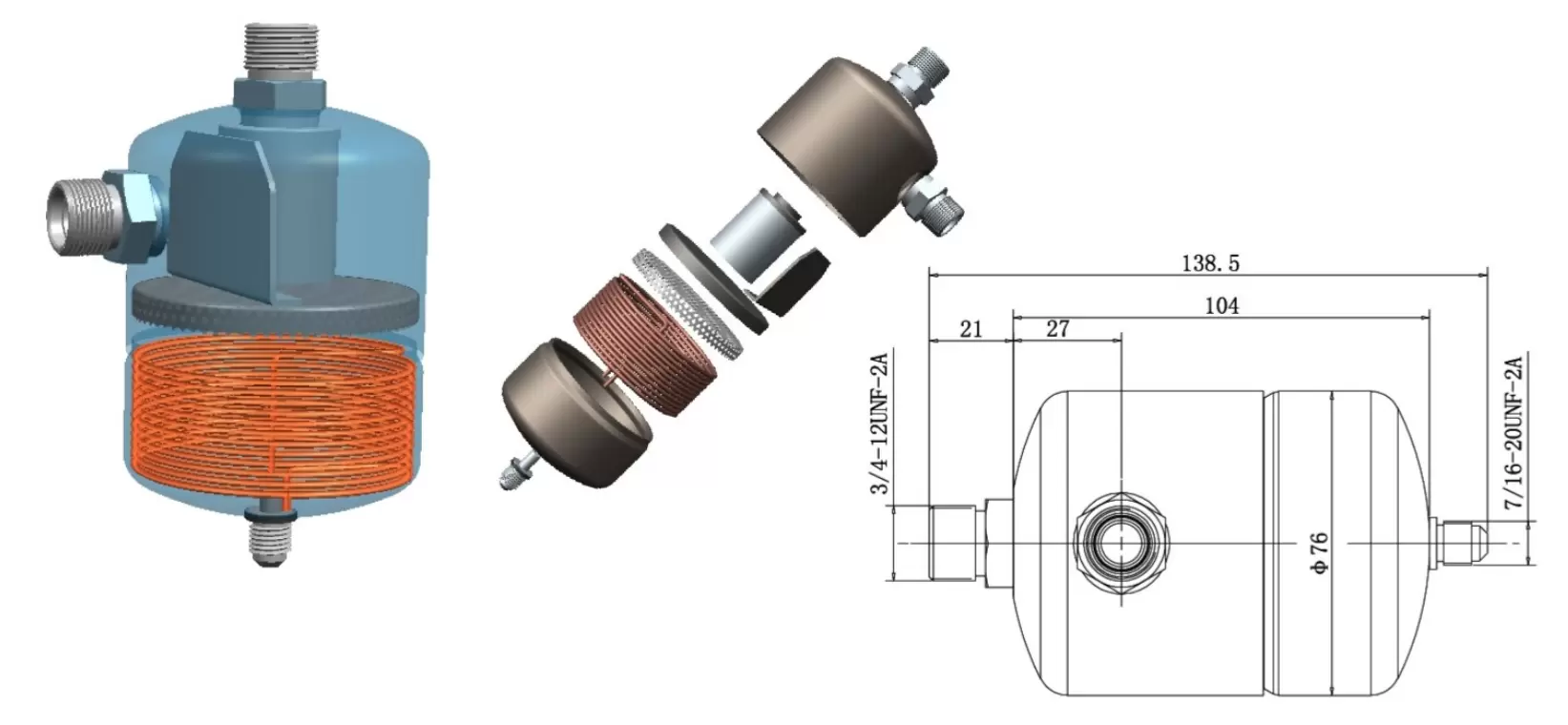 During the operation of a refrigerant compressor, the exhaust outlet of the compressor usually contains a large amount of refrigeration oil. In order to ensure that the compressor does not lose a large amount of refrigeration oil and prevent the refrigeration oil from flowing into the system with the refrigerant and affecting the heat dissipation function of the condenser and the refrigeration effect of the evaporator, an oil separator must be installed between the compressor and the condenser to separate the refrigeration oil and refrigerant, allowing the oil to automatically return to the compressor crankcase through the principle of high and low pressure difference. Ensure that the compressor is not short of oil to achieve the best refrigeration effect.