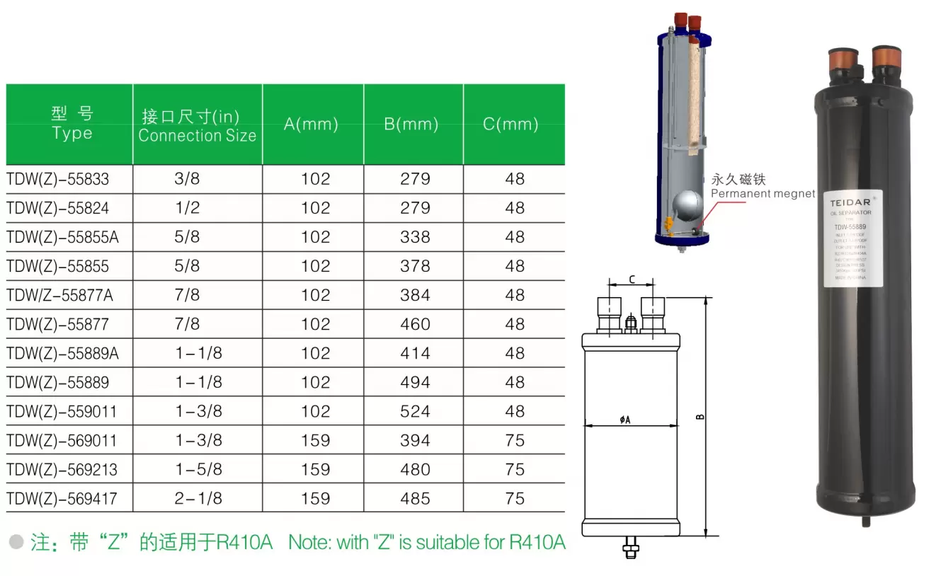 During the operation of a refrigerant compressor, the exhaust outlet of the compressor usually contains a large amount of refrigeration oil. In order to ensure that the compressor does not lose a large amount of refrigeration oil and prevent the refrigeration oil from flowing into the system with the refrigerant and affecting the heat dissipation function of the condenser and the refrigeration effect of the evaporator, an oil separator must be installed between the compressor and the condenser to separate the refrigeration oil and refrigerant, allowing the oil to automatically return to the compressor crankcase. The oil return device is operated by a float ball valve at the bottom of the oil separator, and is completed by the principle of high and low pressure difference. Ensure that the compressor is not short of oil to achieve the best refrigeration effect. Before installing the oil separator, it should be initially filled with oil that matches the oil in the compressor crankcase.